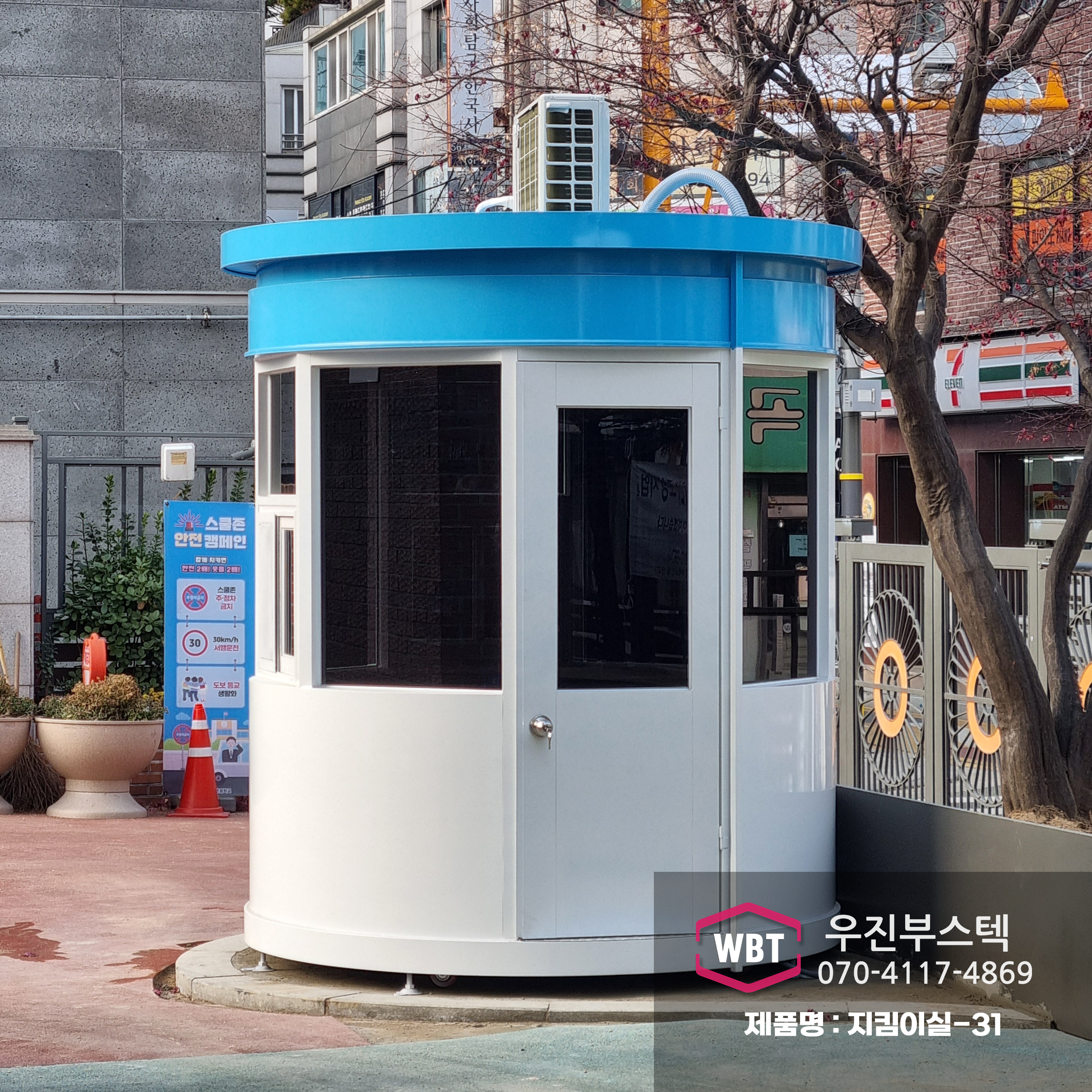특히, 학교폭력과 범죄 예방을 위해 학교 정문에 많이 설치되고 있어요. 배움터보안관님들이 주로 근무하시며, 휴식할 수 있는 공간이기도 합니다. 방문객드링 가장 먼저 찾는 공간이기도 해서, 안전하면서 깔끔한 디자인이 중요합니다.